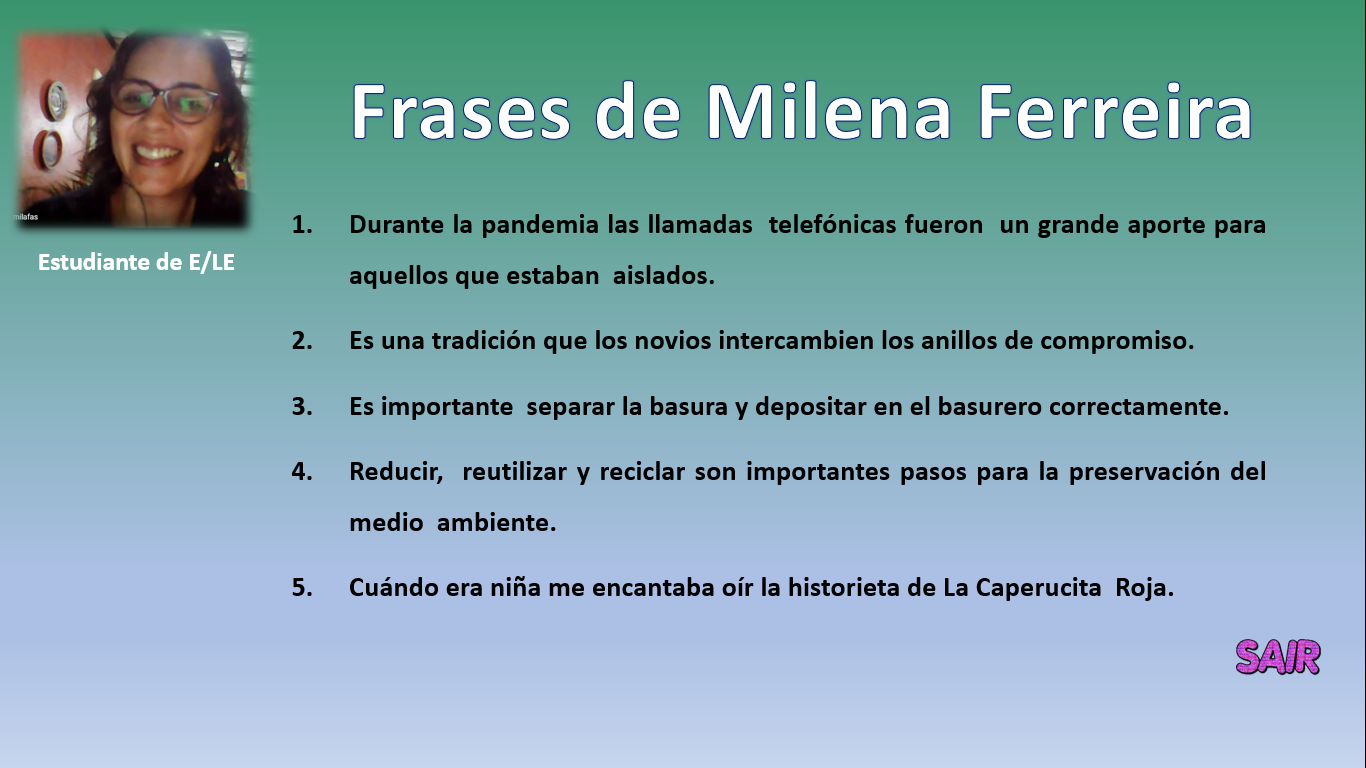 Frases elaboradas por estudiantes de E/LE en una clase virtual utilizando el aplicativo Google Meet. Senac/ Maceió (Al.) Brasil